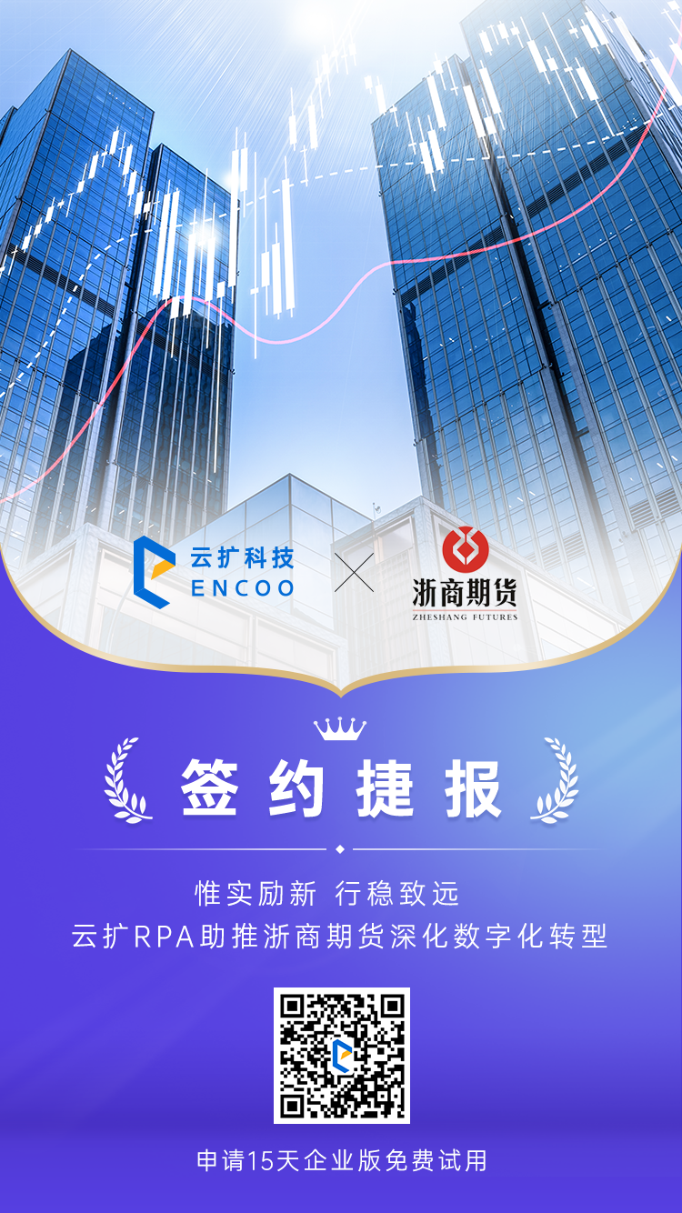 为此,浙商期货选择携手超自动化领域的创新领军者云扩科技,通过运用领先的RPA产品,加快产品和服务创新,全面深入推进数字化场景运营体系建设。