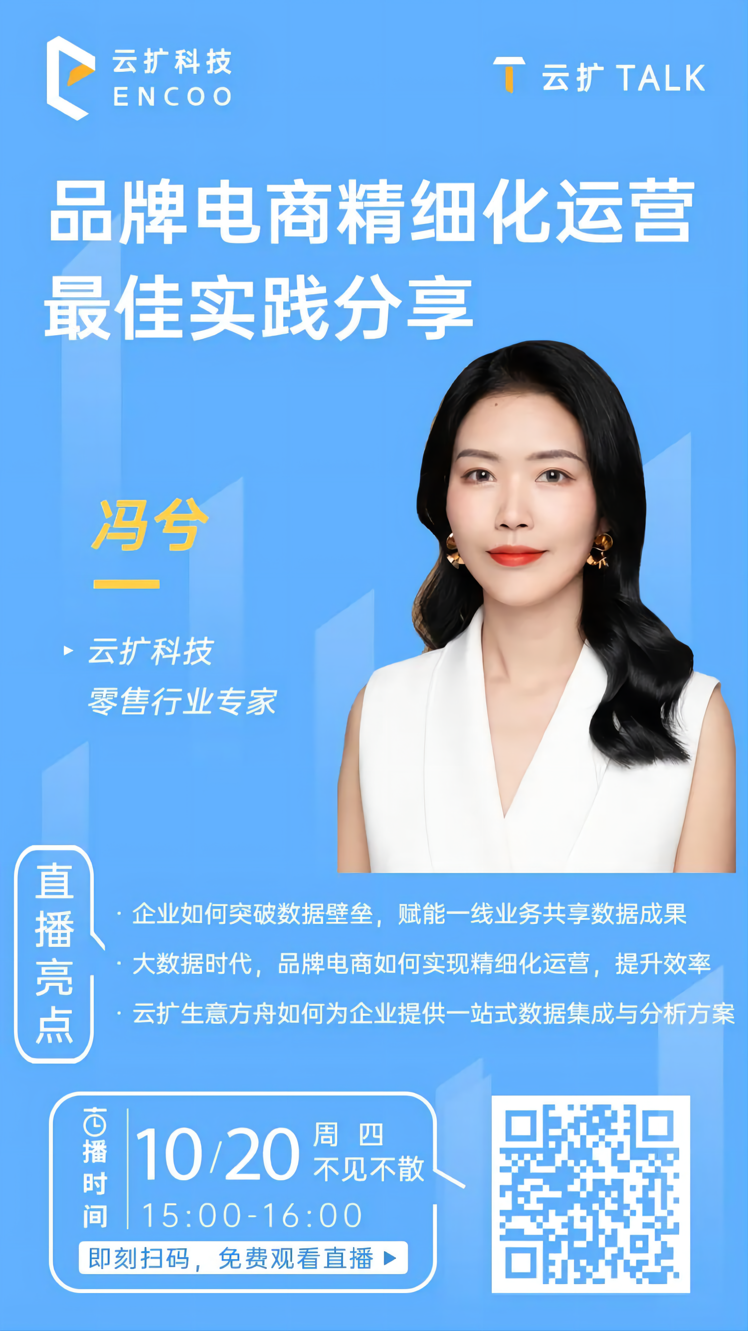 作为品牌专属智能数据管家,云扩生意方舟能通过运营自动化提升数据收集效率及准确性,仅需5秒即可下载推广计划报表,自动汇总成指定的日报、周报格式。云扩生意方舟解决方案将运营数据可视化呈现,助力团队轻松驾驭数据分析, 为电商运营团队大幅提升效率,敏捷响应市场需求,释放业务增长空间。如何助力品牌电商更好地使用云扩生意方舟实现精细化运营?10月20日15:00-16:00,云扩科技零售行业专家冯兮为您带来《品牌电商精细化运营最佳实践分享》主题分享,助您创新致胜、重启增长。