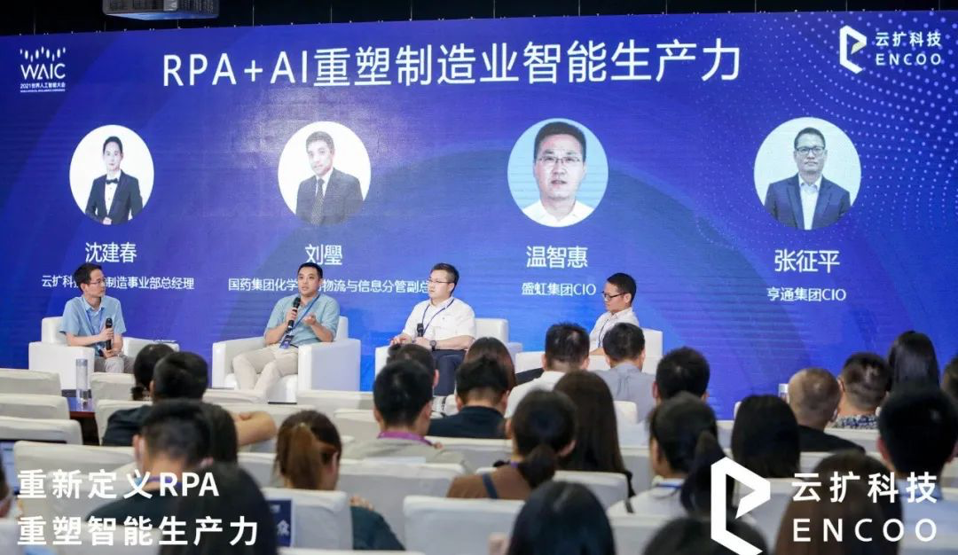 进入工业4.0时代,制造业数字化转型迫在眉睫。在《RPA+AI重塑制造业智能生产力》圆桌对话中,国药集团化学试剂物流与信息分管副总刘璺、盛虹集团CIO温智惠、亨通集团CIO张征平以及云扩科技制造事业部总经理沈建春,围绕RPA+AI在行业内的落地应用,分析RPA+AI应用的最佳实践,展望RPA与行业应用融合发展未来。